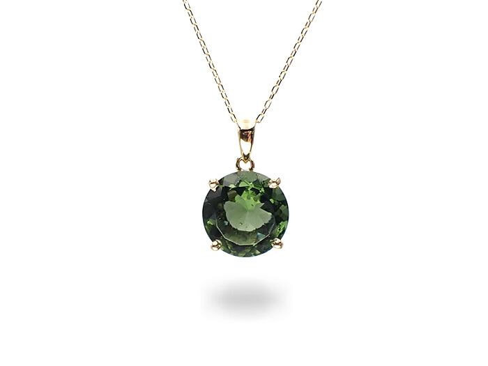 【NEW】【希少】【宝石質】【1点のみ】 星と星が出逢い生まれた あなたを愛に調律する石 モルダバイト・ラウンドカット18金のネックレス