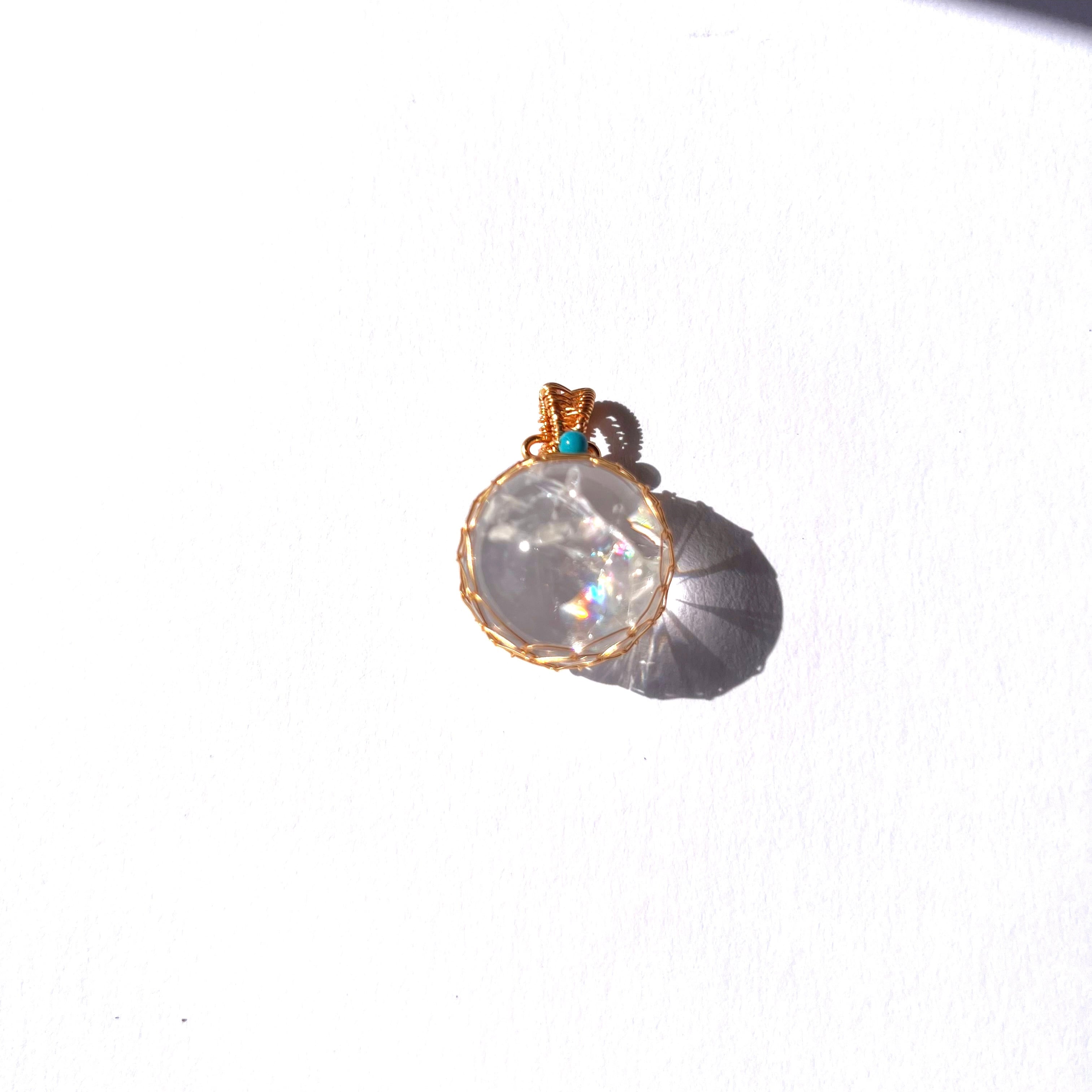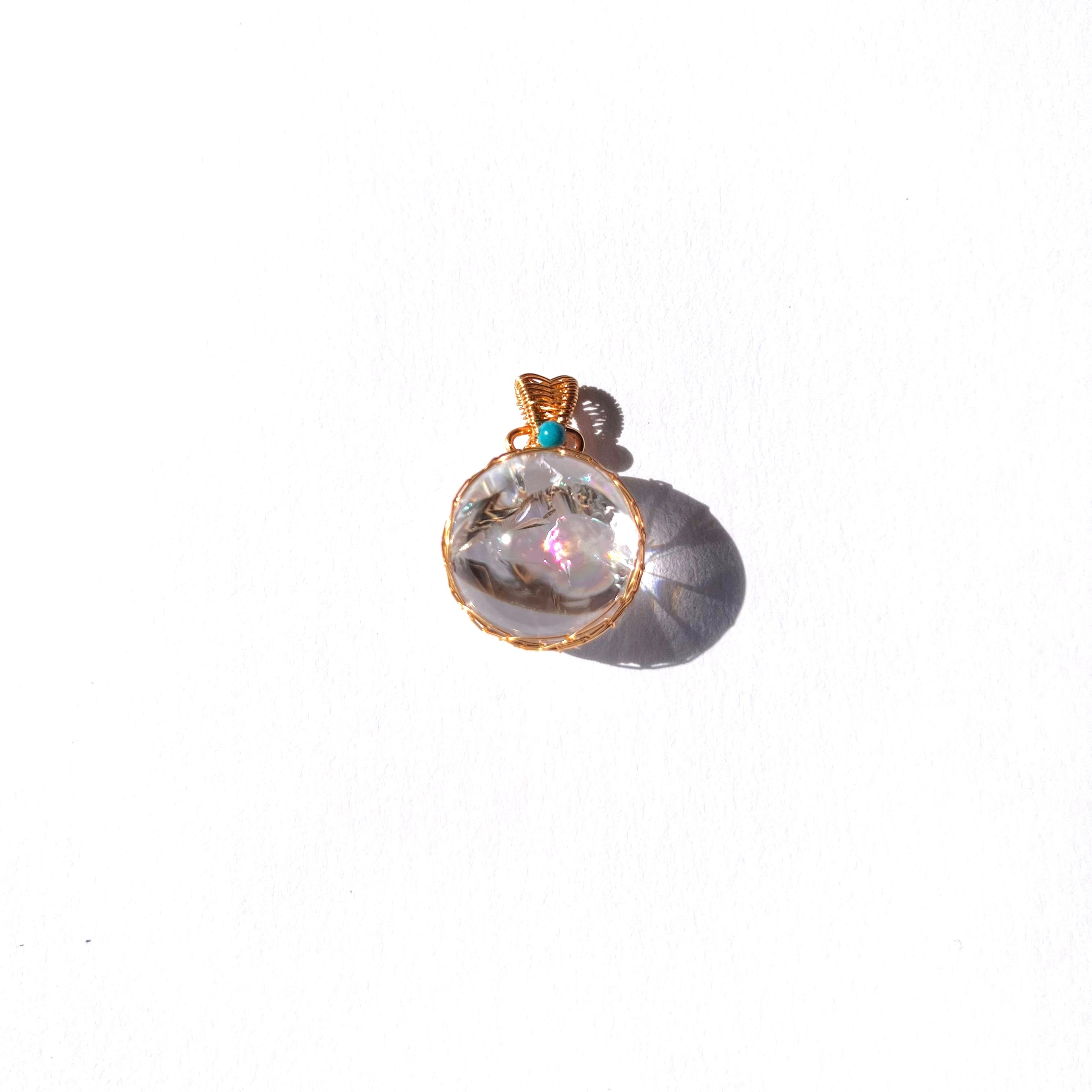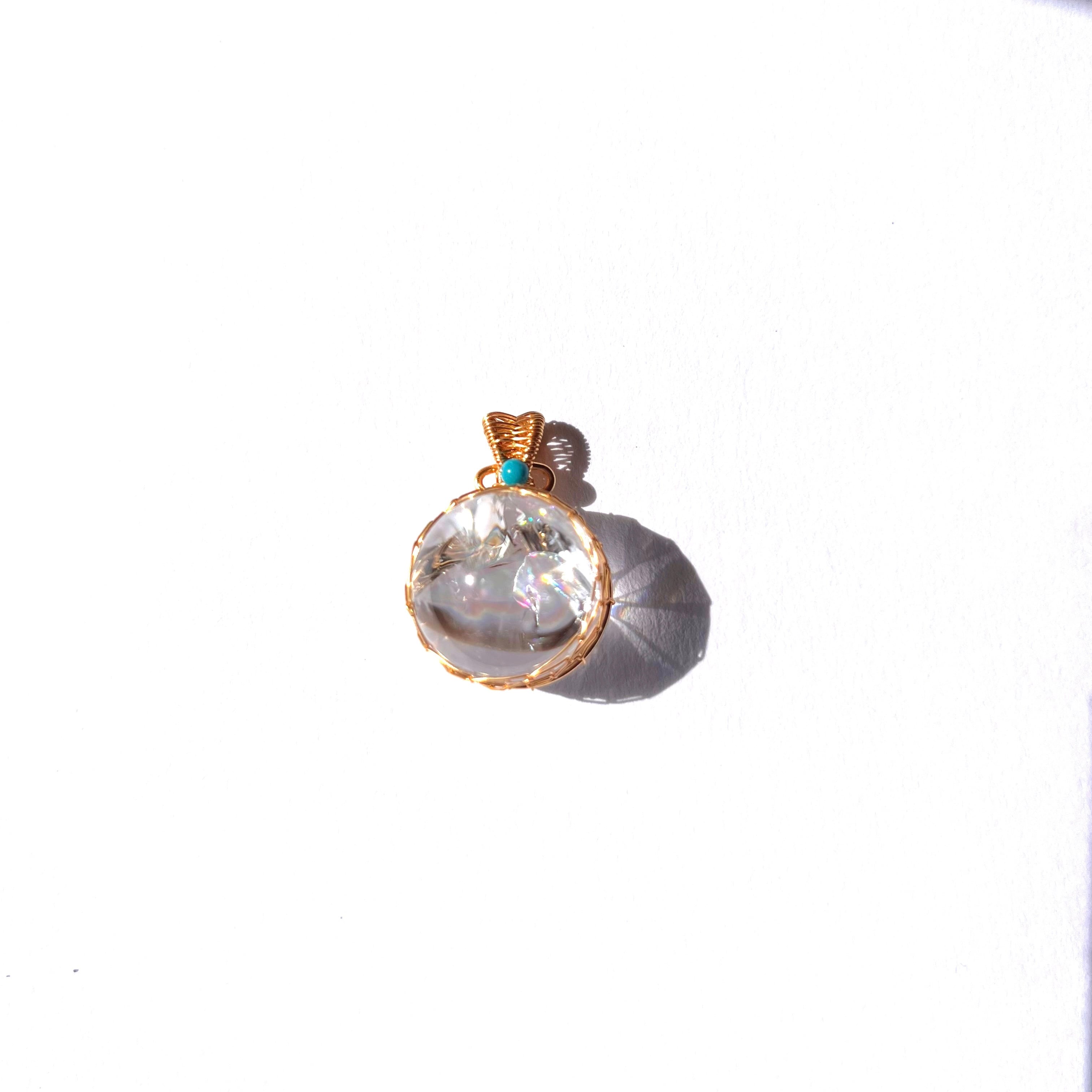 綺麗な虹が出るレインボー水晶のハンモックデザインペンダントトップ。