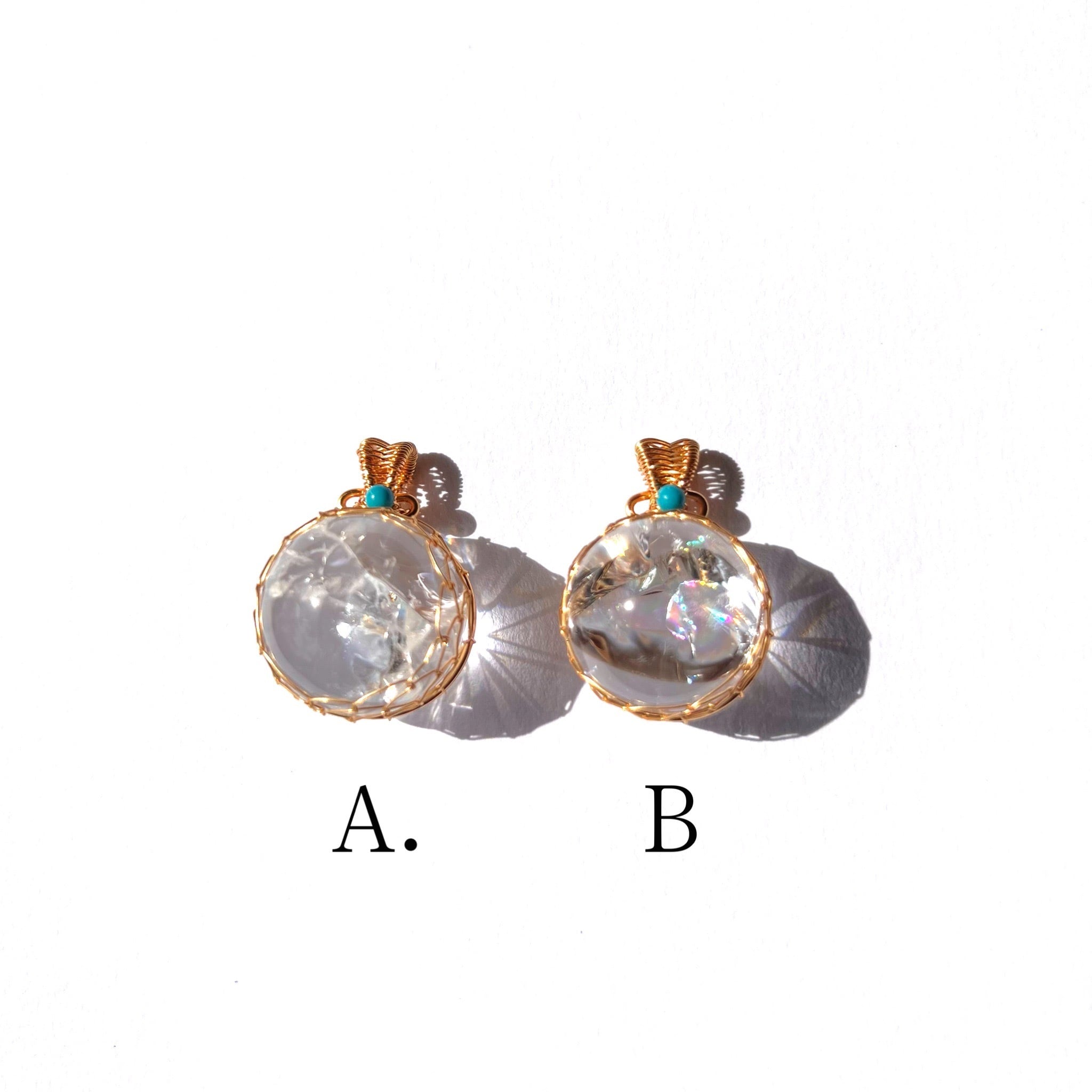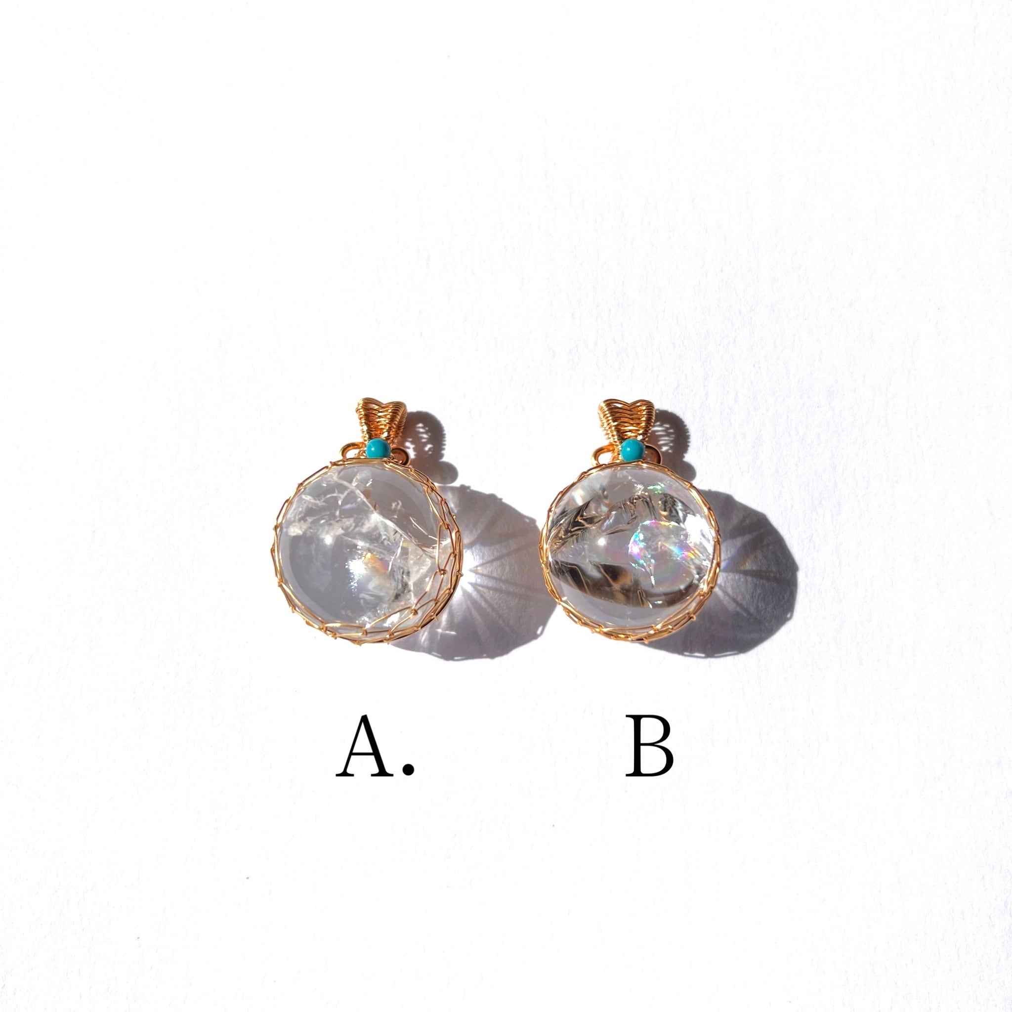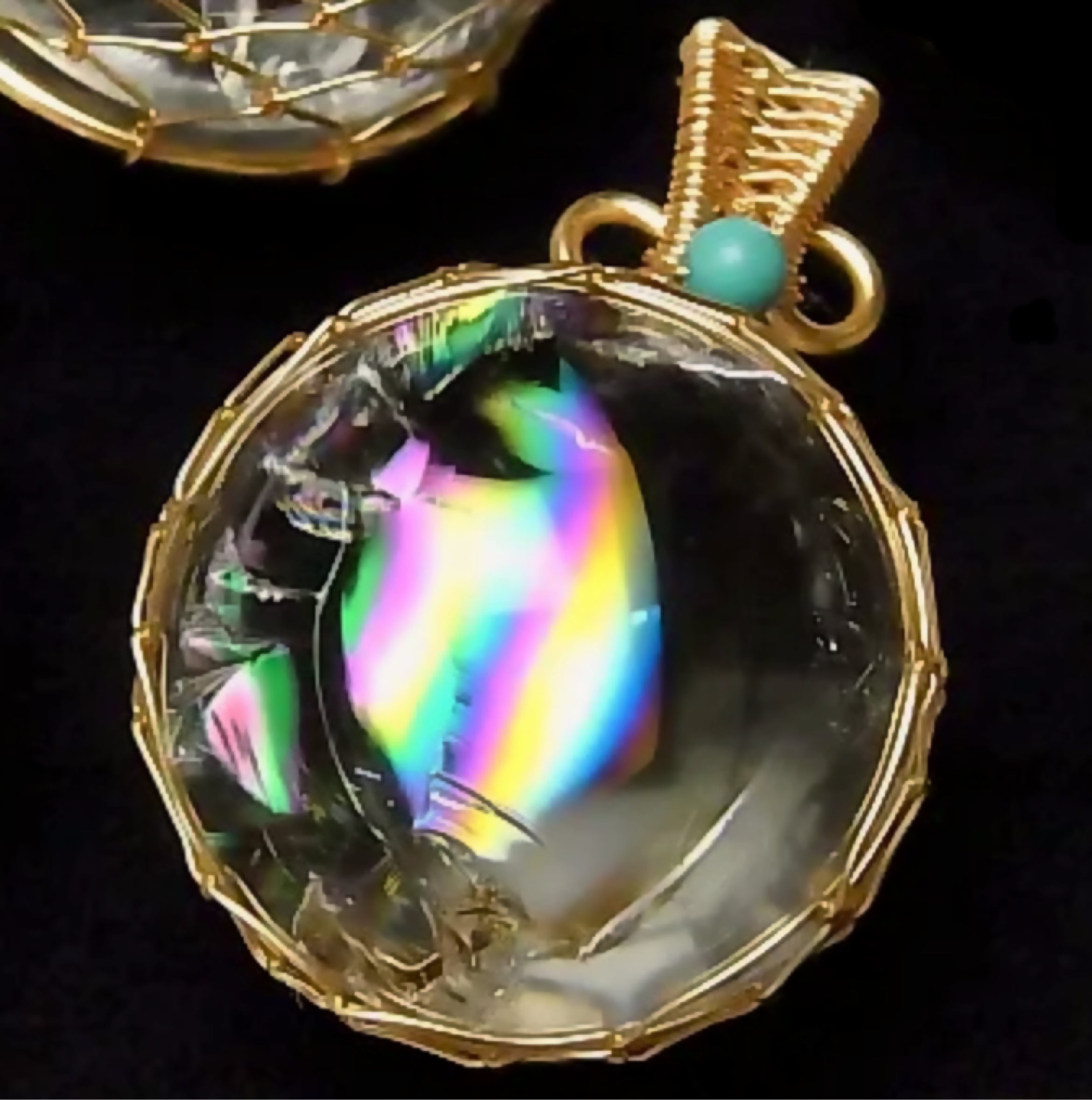 綺麗な虹が出るレインボー水晶のハンモックデザインペンダントトップ。